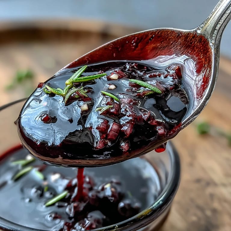Save Elevate your next dinner party with this sophisticated Black Currant and Rosemary Reduction. This deep purple sauce combines the tart intensity of unsweetened black currant juice with the aromatic, woody notes of fresh rosemary and the complexity of a dry red wine. It is a rich, tangy addition that transforms simple roasted dishes into gourmet experiences, offering a perfect balance of acidity and sweetness.