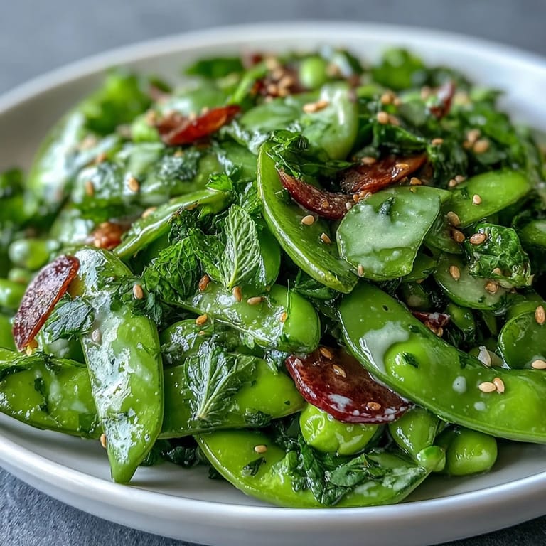 Save The sound of snap peas crunching under my knife was the first sign spring had truly arrived. Early one Saturday, I found myself standing in the kitchen, windows cracked open to let in a breath of green air, inspired by a bag of just-picked vegetables from the market. Something about tossing mint and parsley together with those sharp radishes and a creamy tahini dressing felt like celebrating the season itself. I remember being surprised at how much a simple salad could transform the mood of a sunny afternoon—suddenly everything felt a bit more vibrant. This easy salad became a quick favorite for its brightness and bold textures.