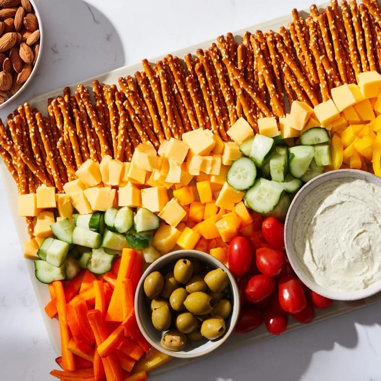 Save The first time I arranged food on a board, I wasn't thinking about recipes at all—I was just trying to make my cramped city apartment feel less lonely. A friend was coming over, and instead of fussing with plated appetizers, I grabbed whatever was in my fridge and started building. That's when I realized something: the way you arrange food matters almost as much as the food itself. A grid of pretzel rods became streets, and suddenly everything else—the colorful vegetables, creamy cheeses, salty olives—looked like a tiny edible city.